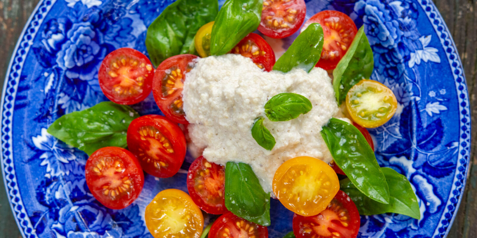 To make the salad, arrange the tomatoes and basil on a plate. Place a few dollops of the ricotta on the salad. Drizzle with olive oil, add salt and pepper to taste, and drizzle with dense balsamic vinegar if using.