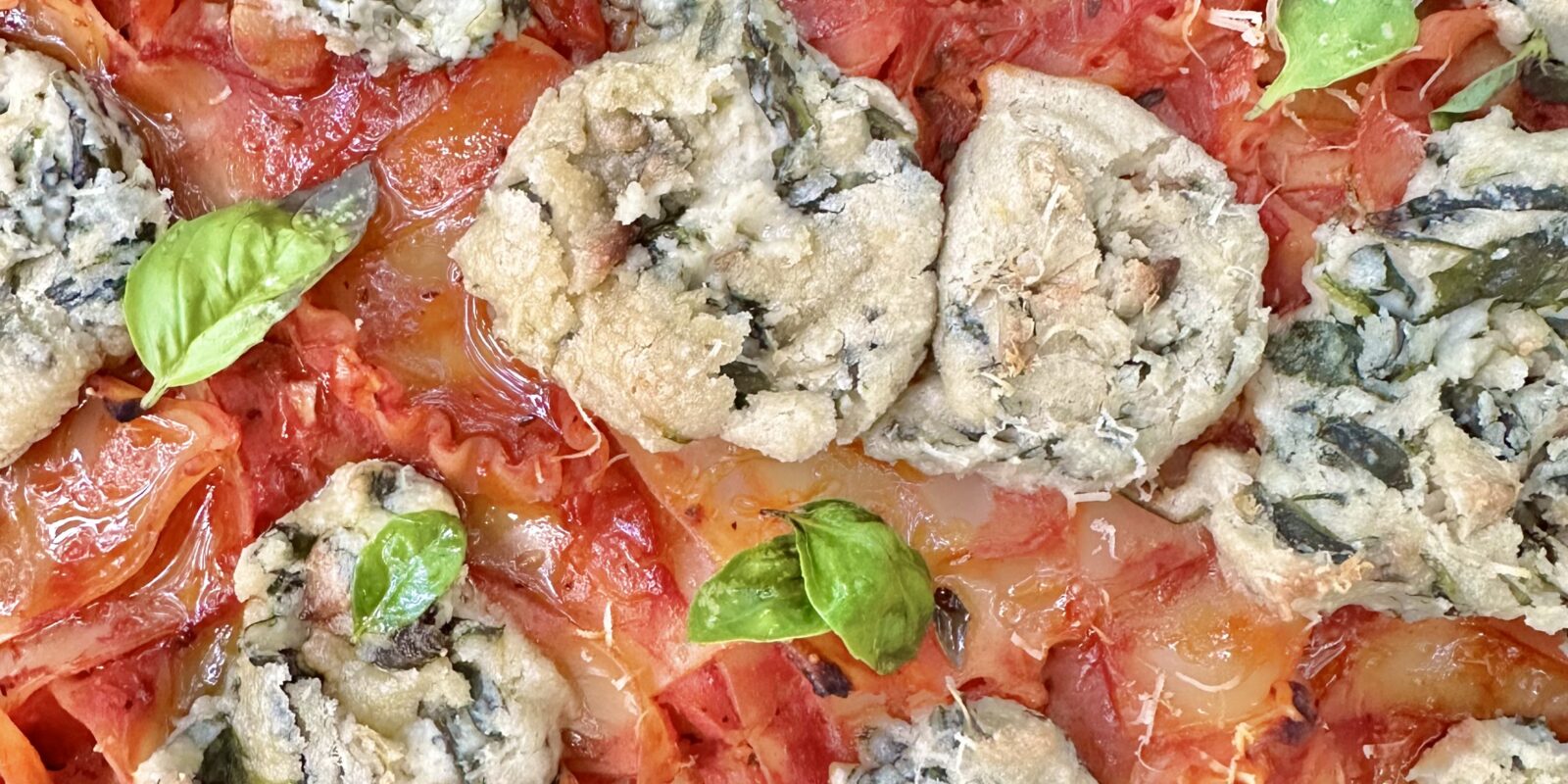 Preheat oven to 350F. To boiling salted water, add the lasagna pieces and boil for 4 minutes; stirring occasionally. When the lasagna is finished cooking, use a slotted spoon to transfer to a large bowl. Immediately add the sauce and stir to coat so that the pasta doesn’t stick together. On a parchment lined baking sheet, brush with the remaining tablespoon of olive oil. Add the lasagna mixture and spread evenly on the pan. Sprinkle with mozzarella, if using. Dollop with the ricotta and bake for 15-20 minutes. Alternatively, you can just bake the lasagna without the ricotta, and add the ricotta later on top. Store any remaining ricotta in the refrigerator for up to three days.